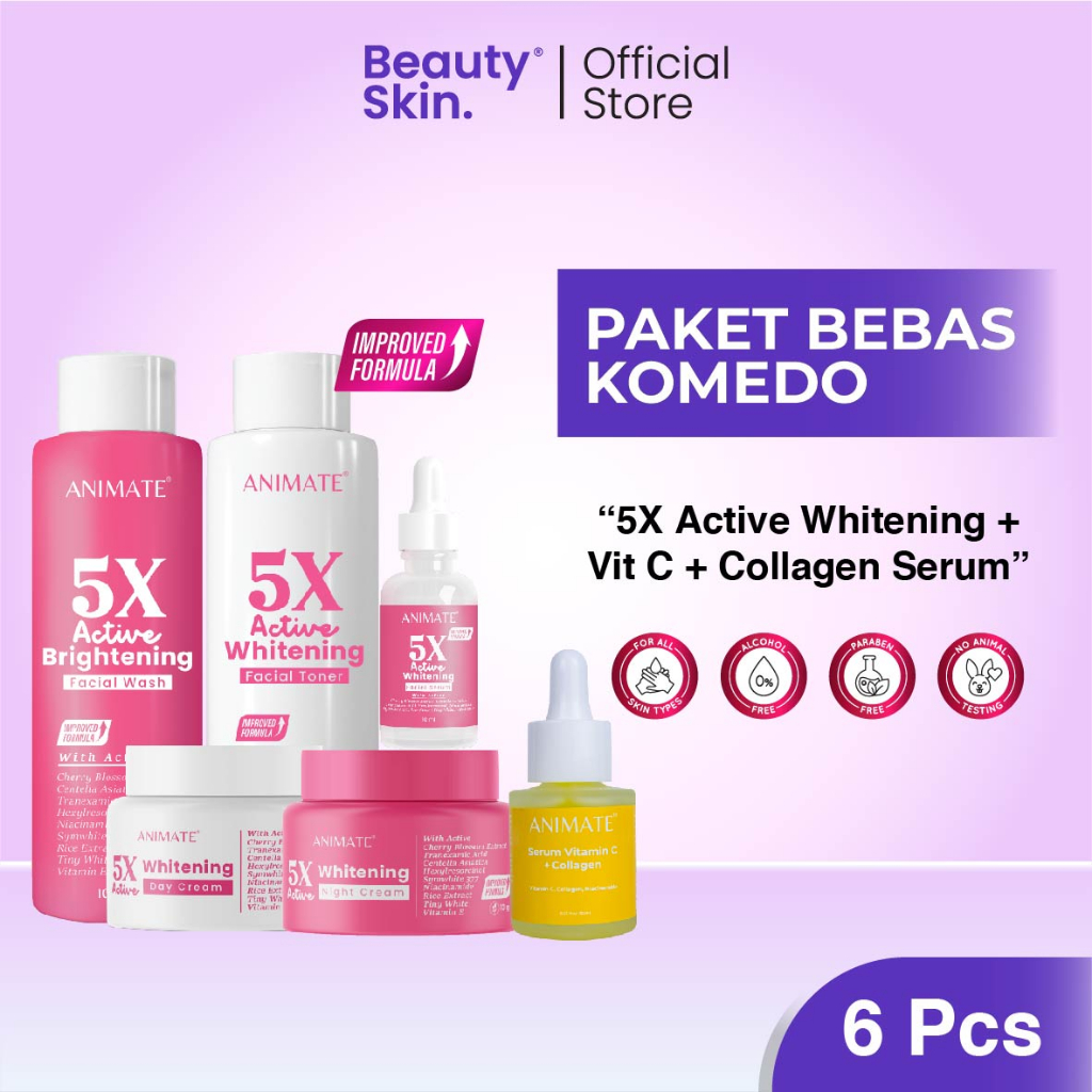Paket Bebas Komedo (Animate t Whitening Series 5in1 + Vit C Serum)