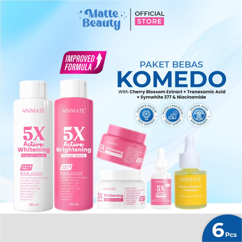 Paket Bebas Komedo (Animate 5x Active Whitening Series 5in1 + Vit C Serum)