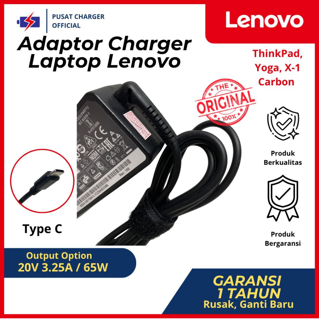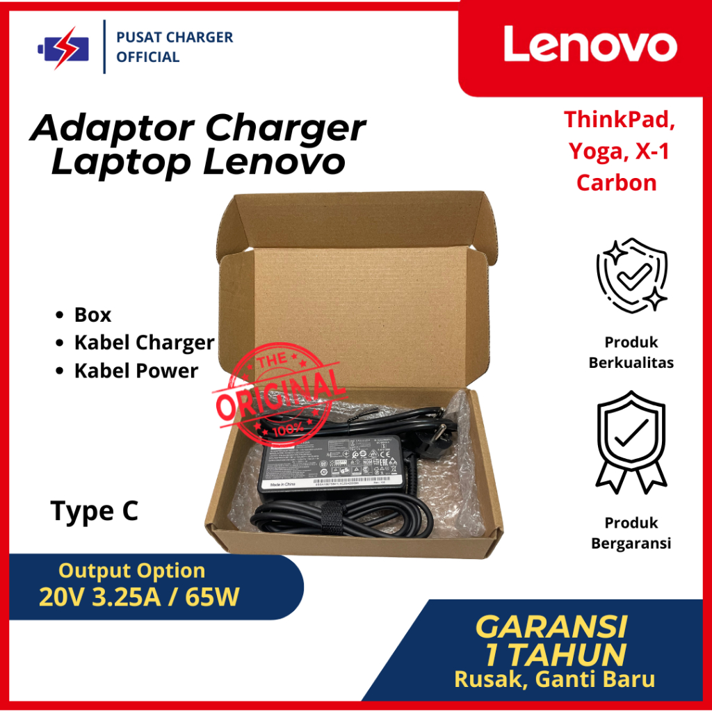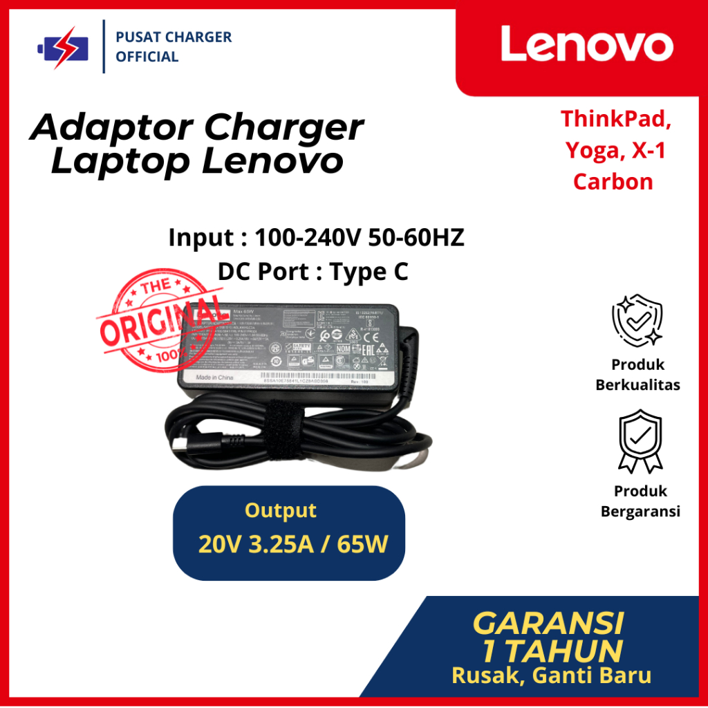 [GARANSI 1 TAHUN] Charger Adaptor Lnvo Type C Original Thinkpad Yoga X1 Carbon 65W Adapter