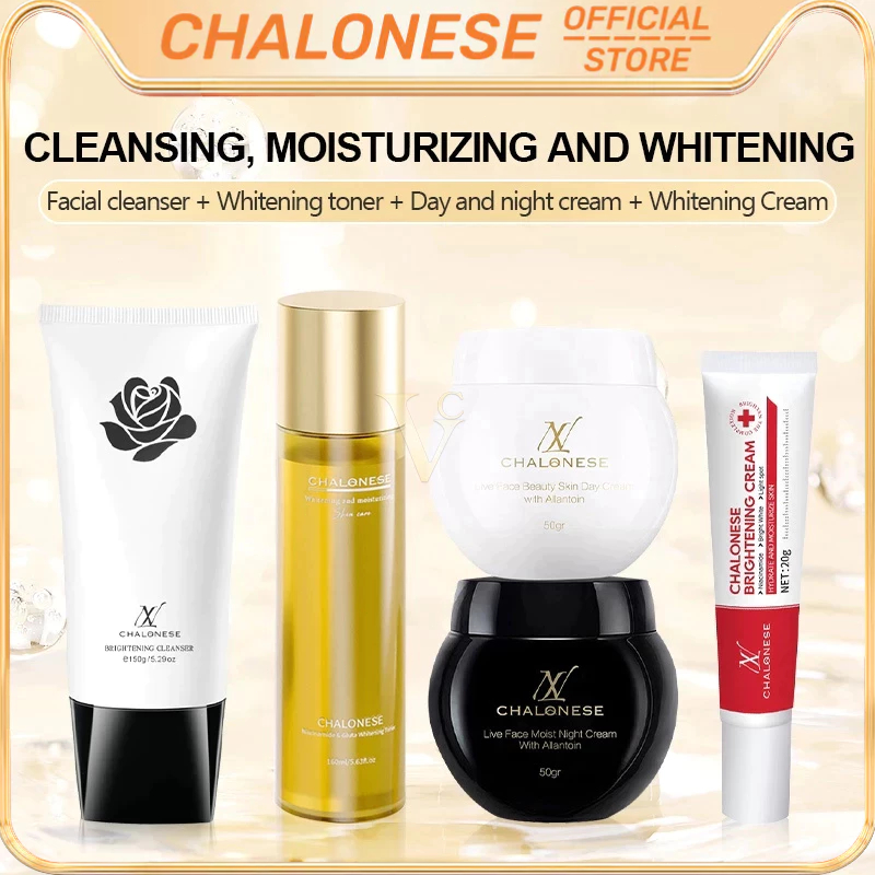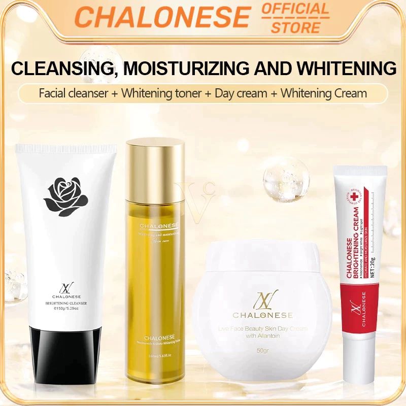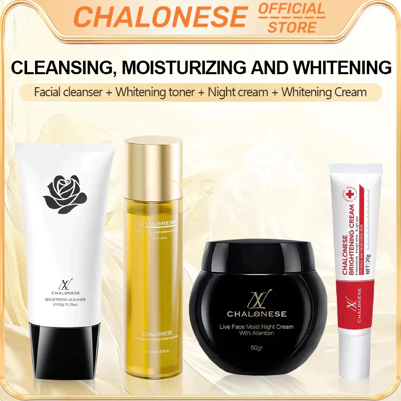 CHALONESE Paket Whitening Freckle Removal Set BPOM ( Brightening Cream + Whitening Toner + Fal Wash + Moisturizer Gel ) Daily Skincare Ninamide & Gluta Toner Day & Night Cream Pemutih Whaja