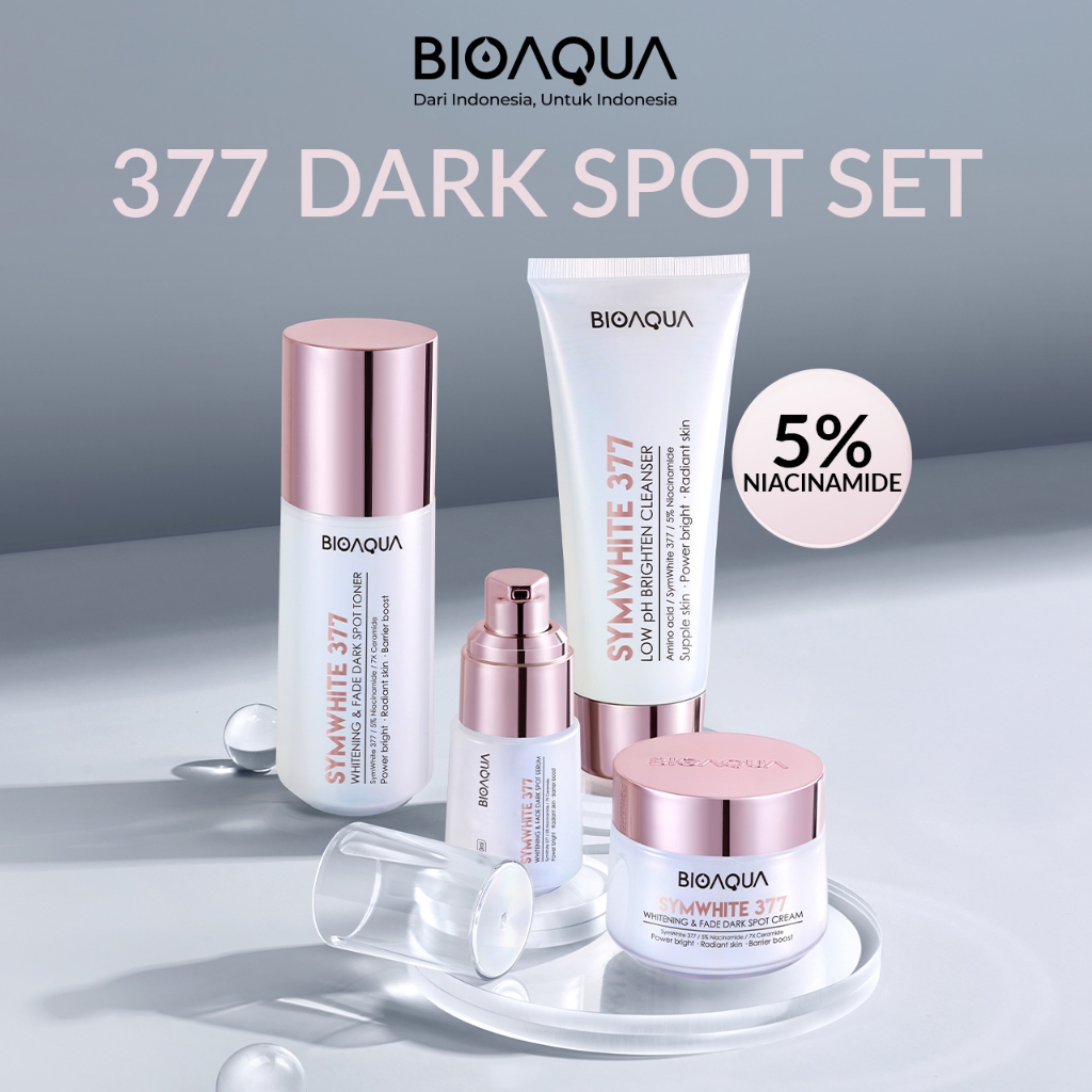 BIOAQUA SymWhite 377 Whitening & Fade Dark Spot Skincare 1 Set Lengkap BPOM Basic Skincare Paket Skincare Set With Fal Wash 100g / Toner 120ml / Serum 30ml / Moisturizer 50g / Sunscreen SPF 50 PA ++++
