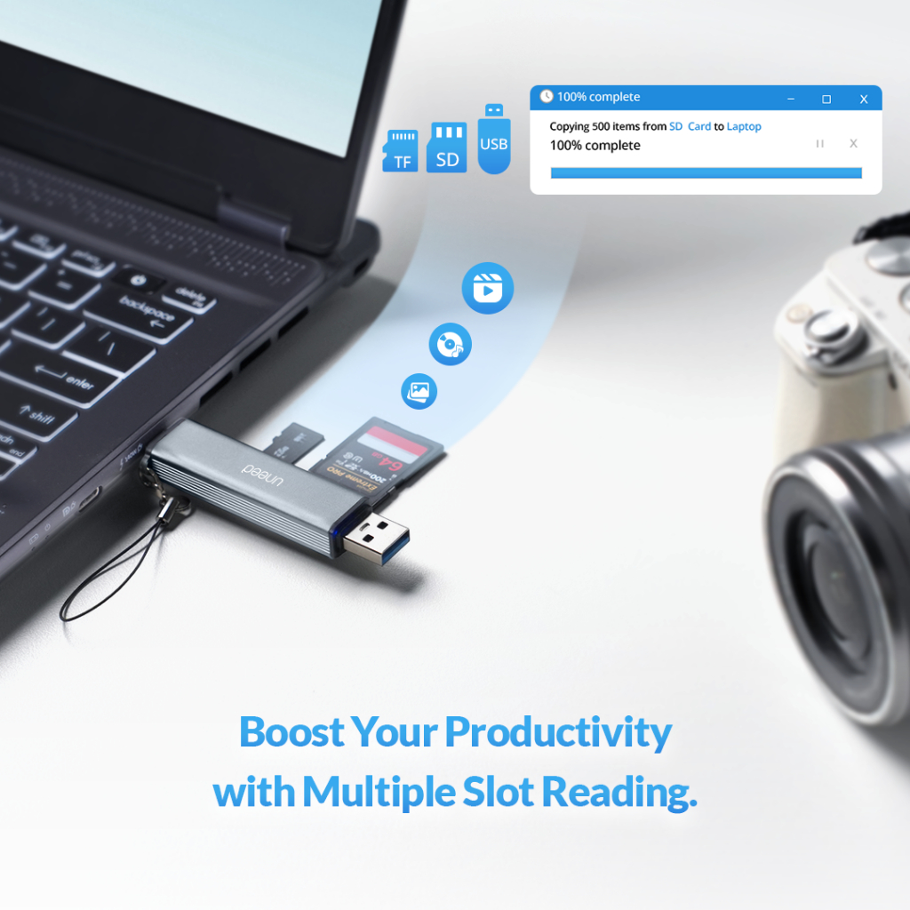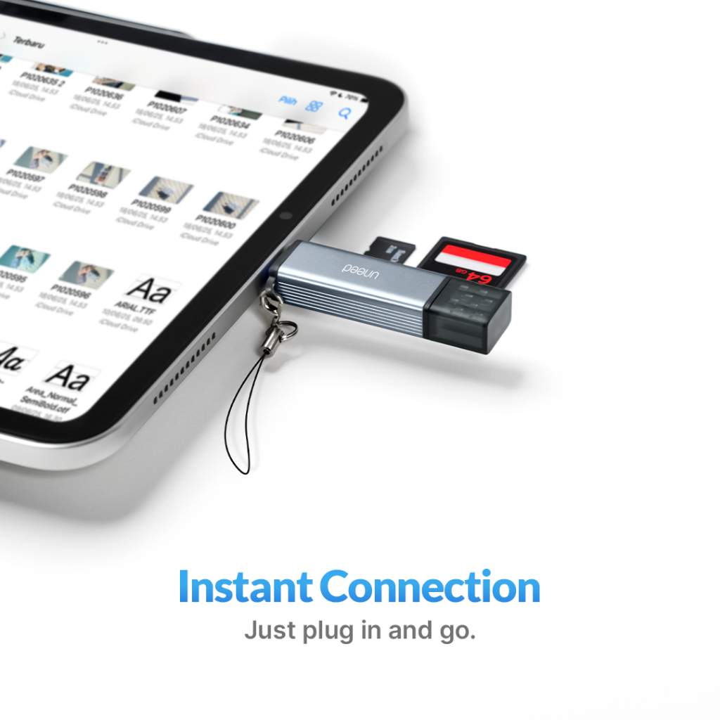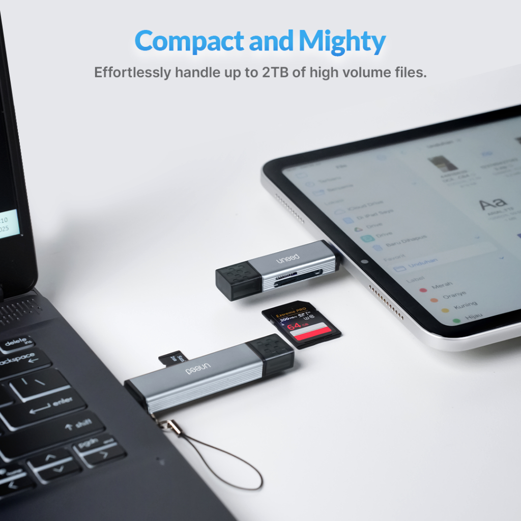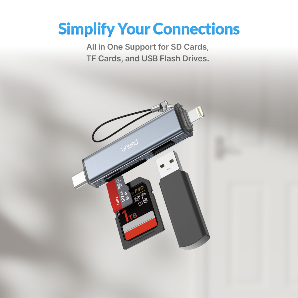 UNEED All in One Card Reader USB A, Type C & Lightning to Memory SD/TF Card/USB A 2TB Support
