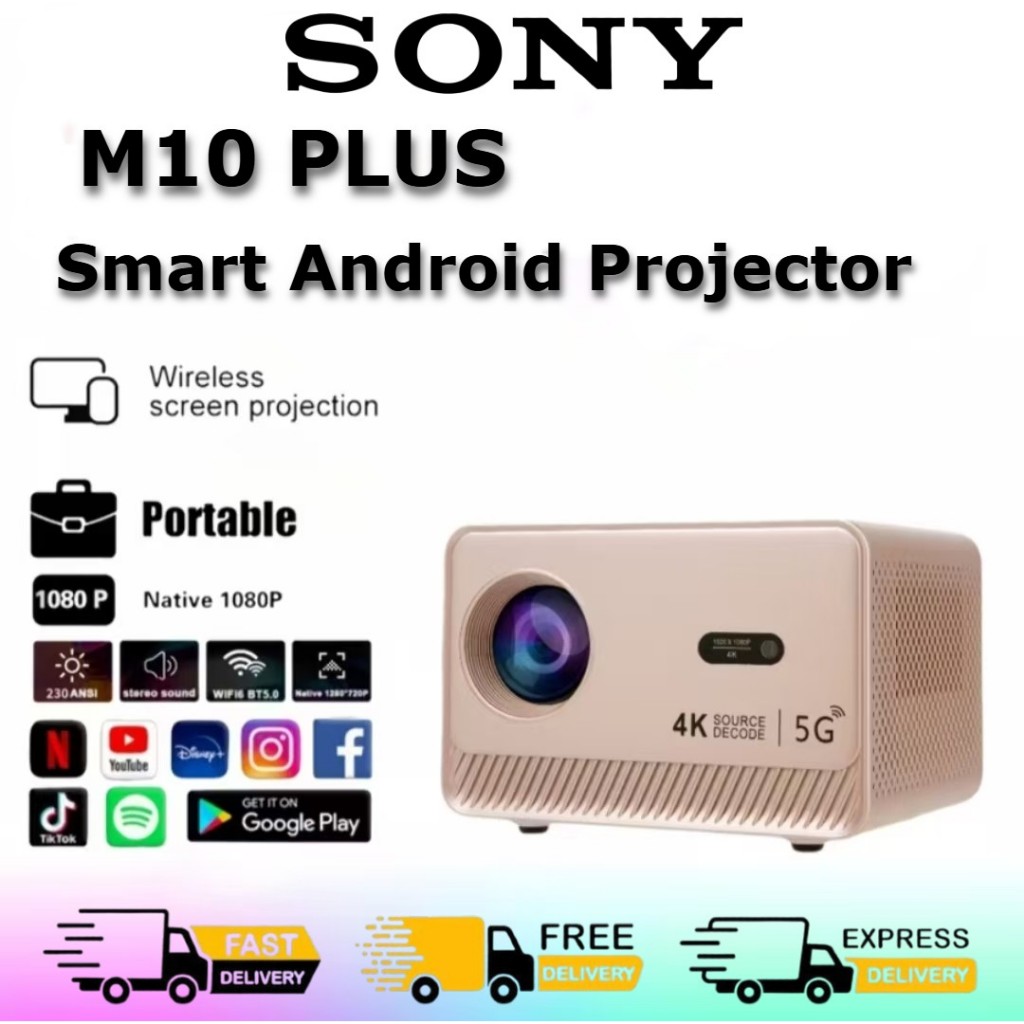 M10PLUS Proyeksi 250ANSI Lumen / M713 Chip Android 13.0 1080P 4K layar sentuh pemodelan 2.4 + 5Gwifi