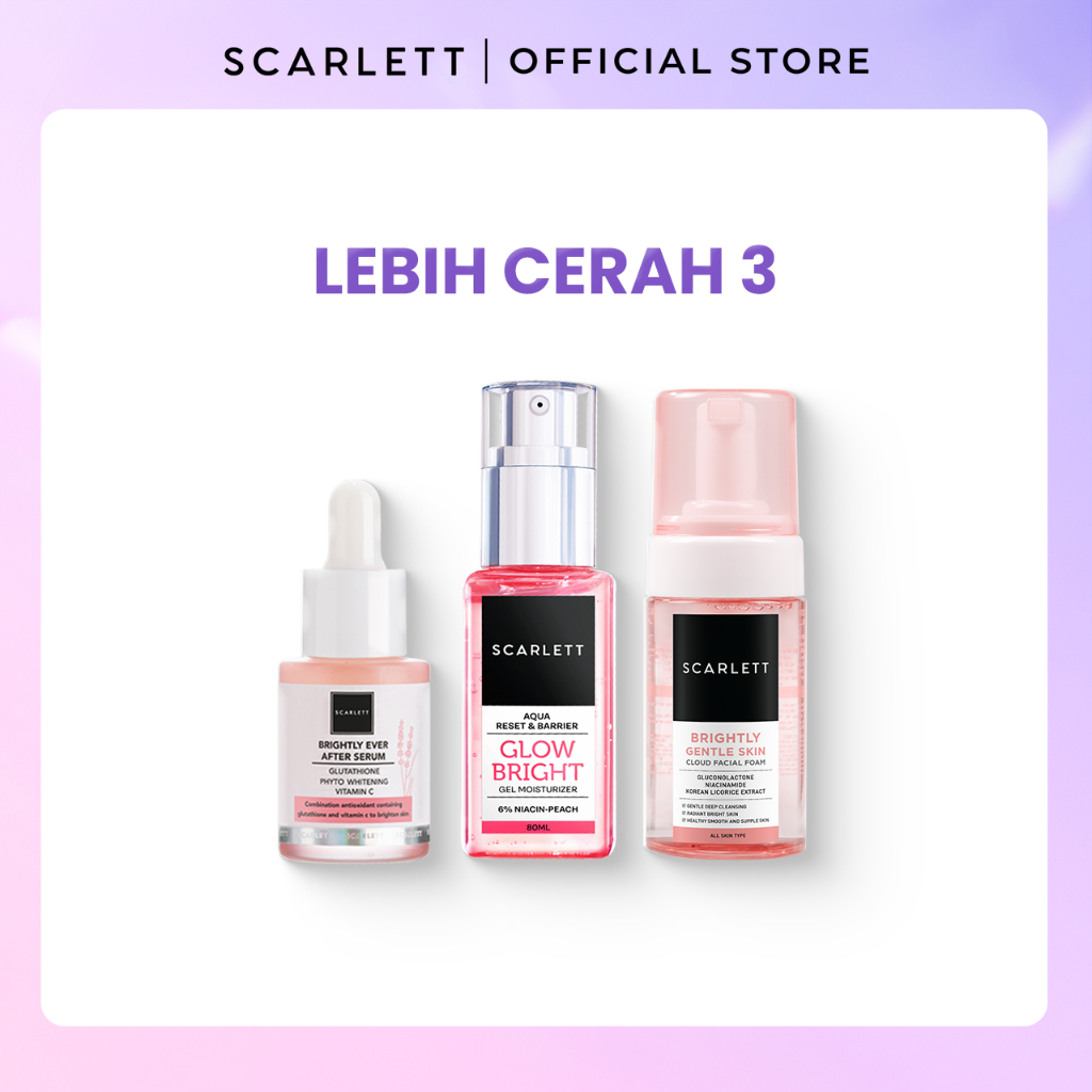 SCARLETT Paket Basic Skincare Brightening Cleanser + Moisturizer + Serum + Sunscreen Mencerahkan Wajah Menghin Jerawat