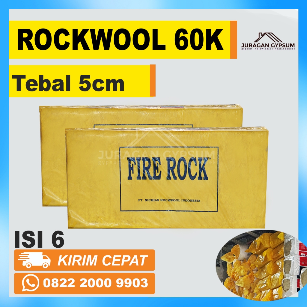 Rockwool D60 tebal 5 cm isi 6 | Rock wool Density 60k 2" | rockwoll Densiti 60 isi 6 | Fire Rock