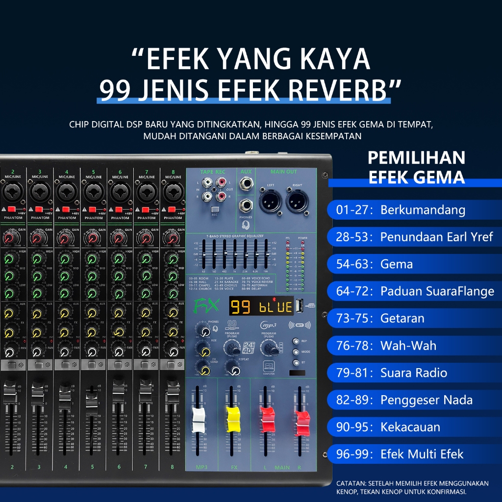 LUXSONA Mixer audio 8 saluran profesional/mixer 99DSP/mixer audio 8 channel asli/konsol papan suara admixer DJ/dengan US