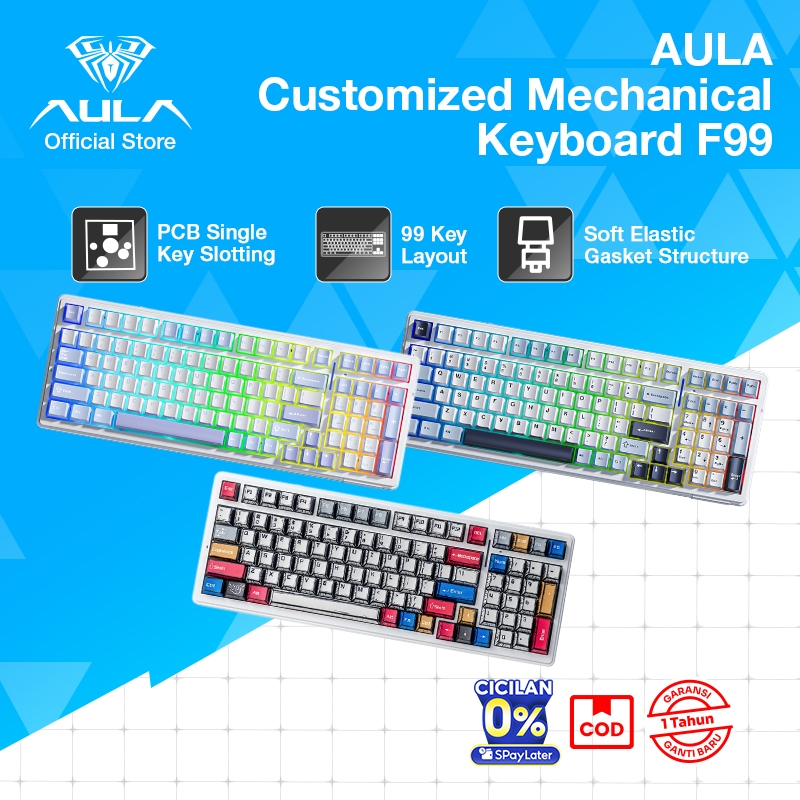 Aula F99 Wireless Gaming Keyboard Bluetooth Mechanical Keyboard Hot Swappable Custom Creamy Computer Keyboards RGB Backlit Gaming