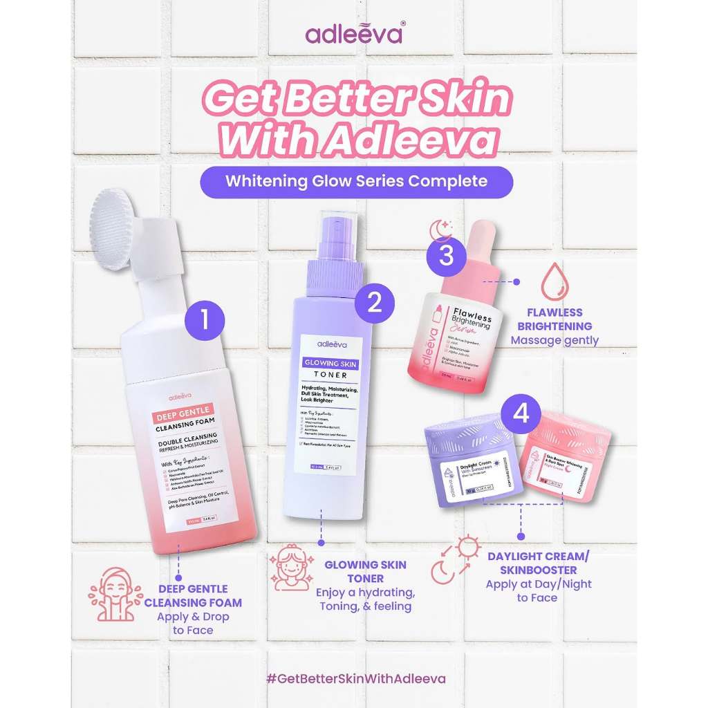 ADLEEVA SKINCARE - Mencerahkan Kulit (Paket Pemula ISI 4) WHITENING Glow Booster | KIT PERAWATAN KULIT