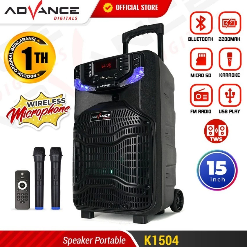 Advance K1504 Speaker Bluetooth Karaoke Wireless Portable Super Bass Aktif BONUS 2 Pcs Mic Wireless
