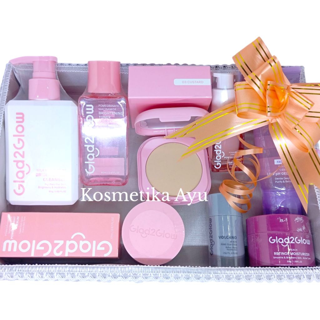 Glad2Glow Paket Skincare Seserahan Gratis Box Seserahan Paket G2G Skincare Make Up