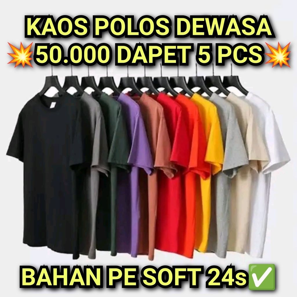 KAOS POLOS DEWASA | 50RB DAPET 5 PCS | PAKET HEMAT MURAH BANGET | HARGA GROSIR