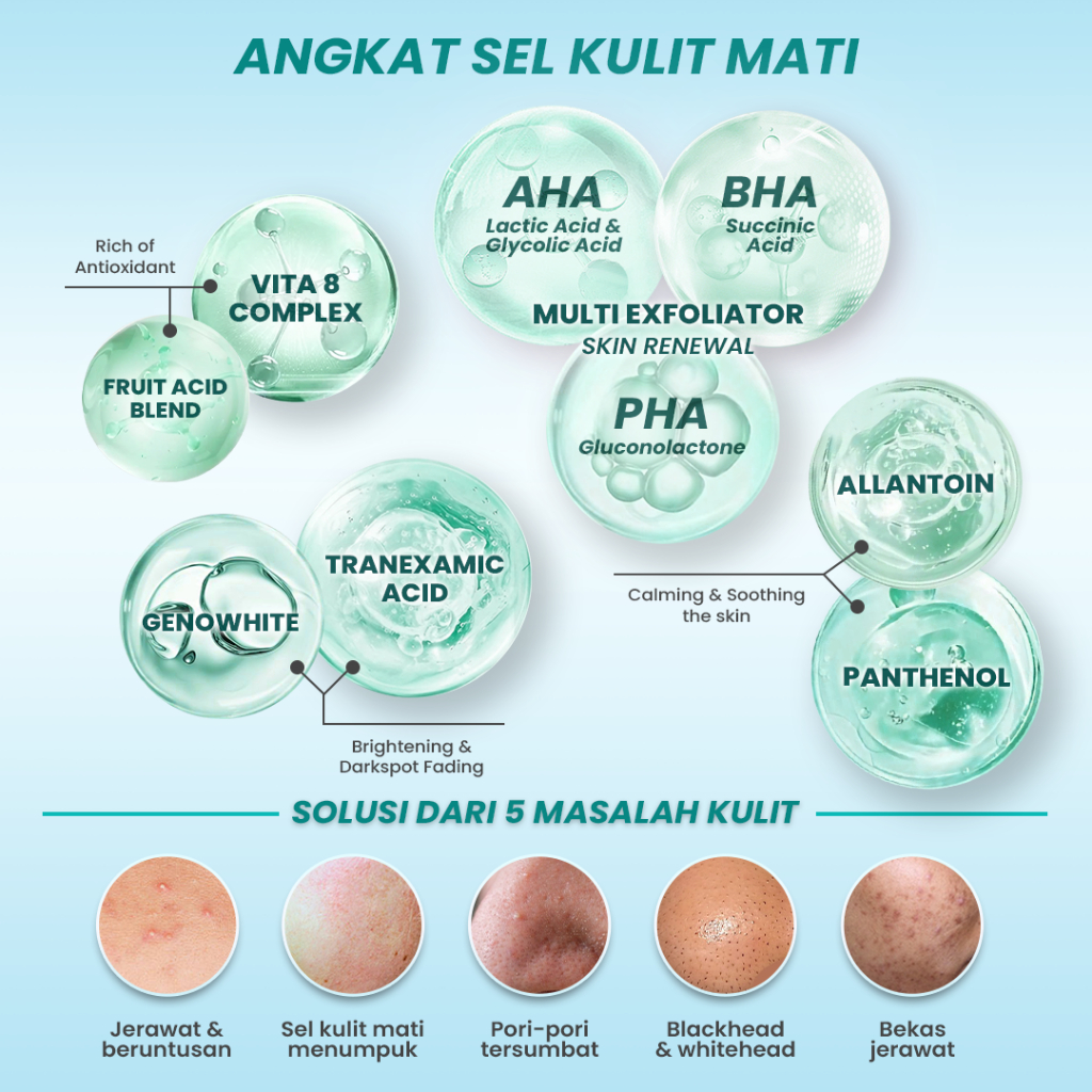 Hanasui Advance Exfoliating Serum - Kurangi Beruntusan Jerawat Komedo Cerah & Halus Lactid Acid, Gylocic Acid