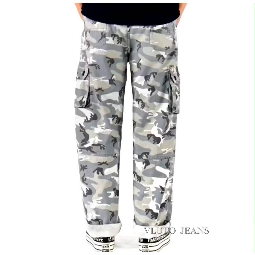 Celana Cargo Loreng Army Gombrong Tebaru / Cargo Camo Reguler Fit Standar Non Stretch
