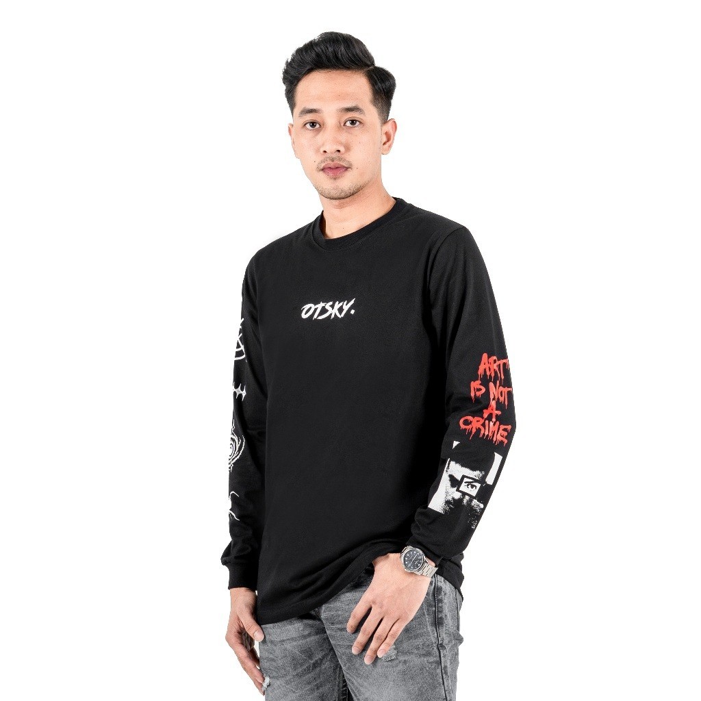 Otsky Kaos Pria Lengan Panjang Black H0LE X YB582 Cotton 24s 2(O4)