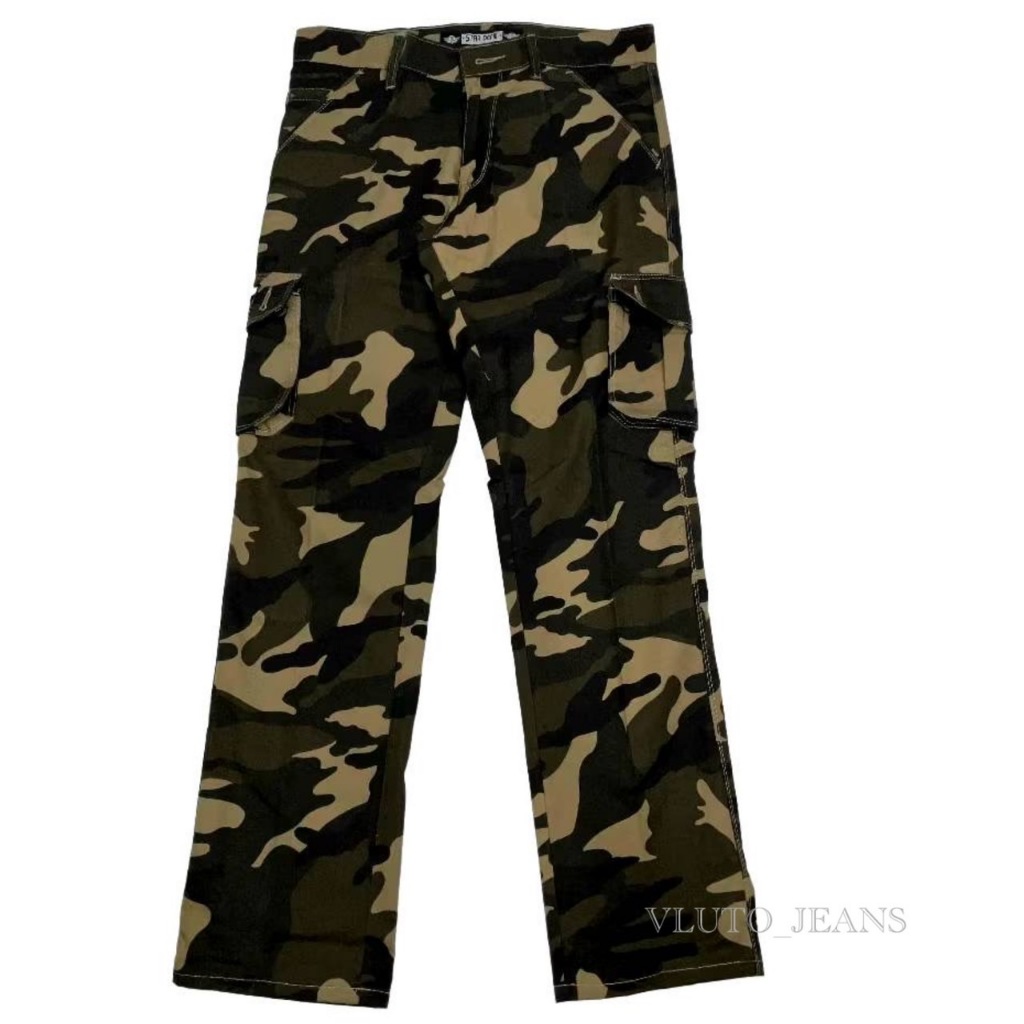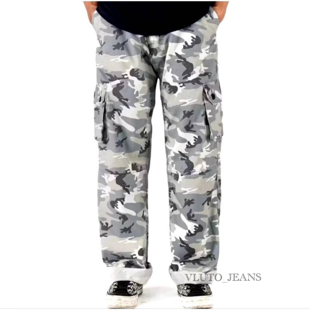 Celana Cargo Pants Loreng Pria Motif Camo Gombrong Bahan Reguler Fit Tidak Melar Size S M L XL 36 38