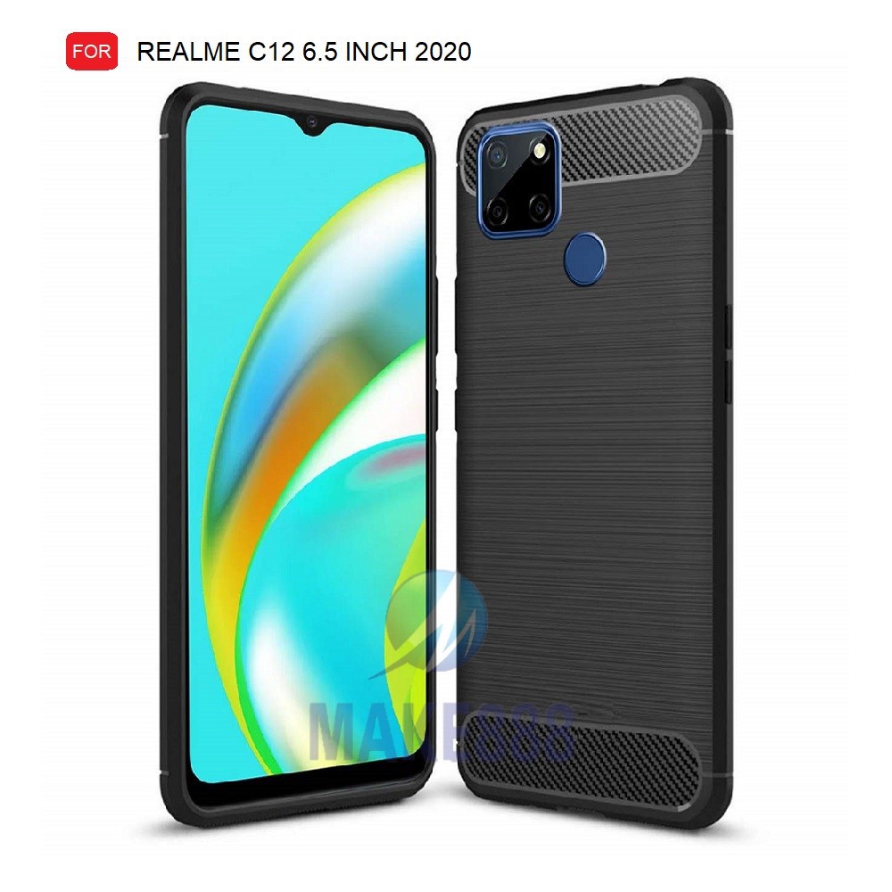 Case Ipaky Carbon Fiber REALME C12 / C25 / C25S / NARZO 30A / Q2i / V3 Softcase Shockproof TPU BLACK