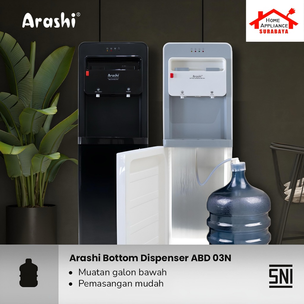 ARASHI Dispenser Air Galon Bawah 2 IN 1 Normal Panas Low Watt ABD-03N / ABD 03 N Putih
