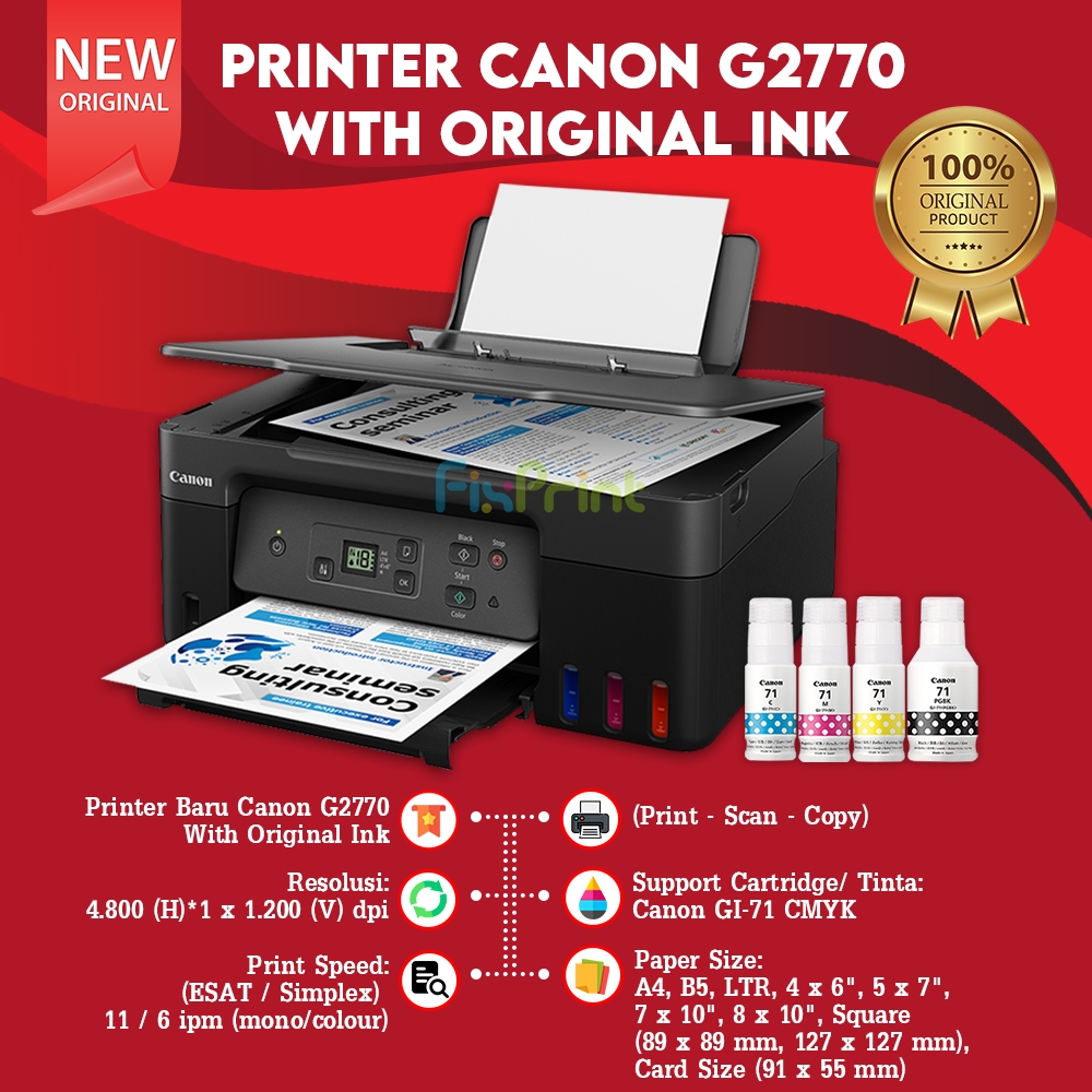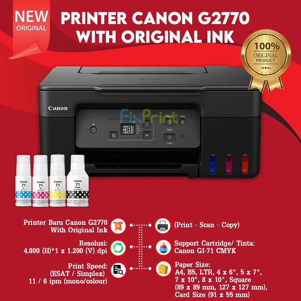 Canon Pixma G2770 Printer Inktank Ink Tank Multi Fungsi Multifungsi Garansi Resmi Bergaransi Original Print Scan Copy Pr