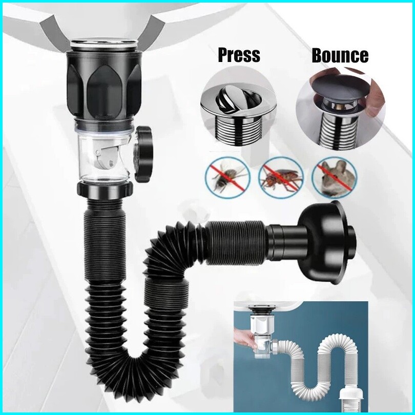 Codsifon Wastafel Sifon Botol Selang Tarik Siphon Selang Angsa Fleksibel Wastafel Wastafel Cuci Piring Wastafel Kamar Ma