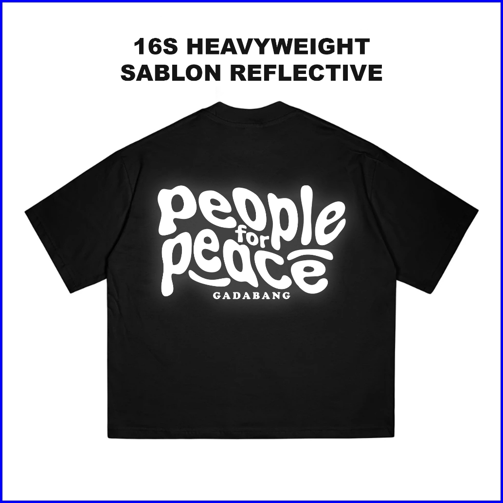 Gadabang T-shirt Boxy Heavyweight 16s Reflective Kaos Sablon Menyala People For Peace Hitam