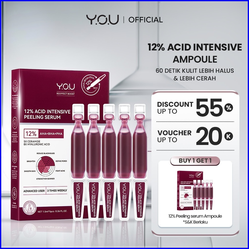 You 12 Acid Intensive Peeling Serum 1.5ml 5 Travel Size Aha Bha Pha Eksfoliasi Kulit Cerah Halus Pori Besar