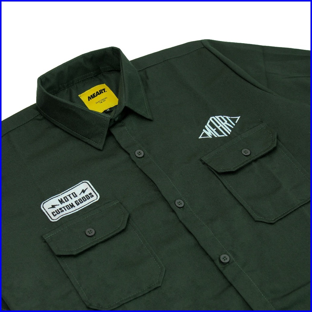 Meart - Workshirt Moto Custom Goods Hijau Army Kemeja Kerja Kemeja Motor