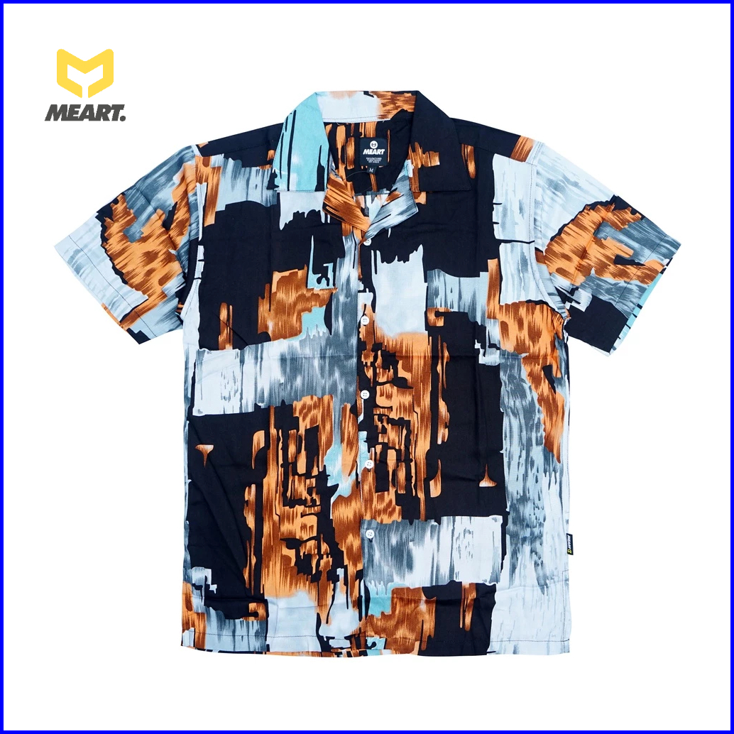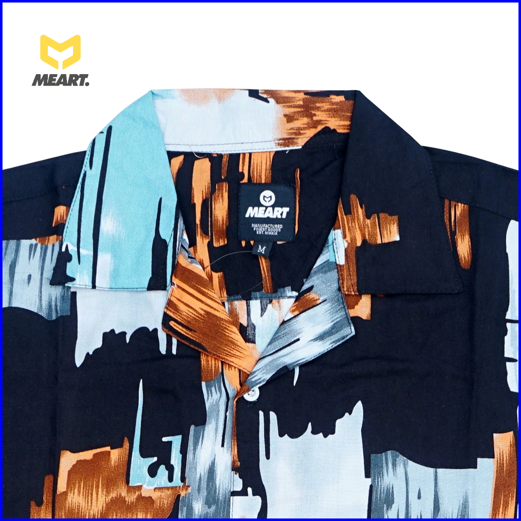 Meart - Pattern Short Shirt Leaf Kemeja Motif
