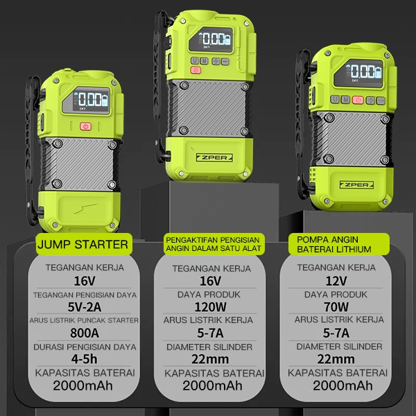 ZPER alat jumper aki mobil portable charger aki 12 volt otomatis pompa angin ban motor kabel pompa ban elektrik