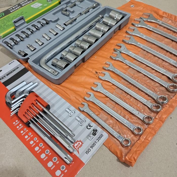 Kunci Sok Set Victory 27 Pcs + Ring Pas Set 11 Pcs Diamond + Kunci L Bintang Kombinasi 9 Pcs - 1 SET PAKET LENGKAP