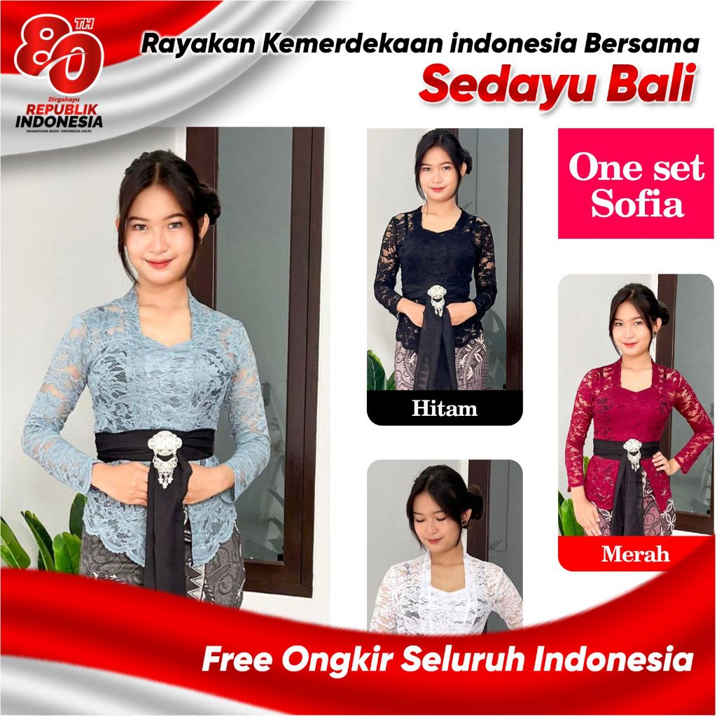 One set kebaya sofia lengan panjang set Selendang sifon | Setelan kebaya Brokat | Pakaian atasan wanita tradisional