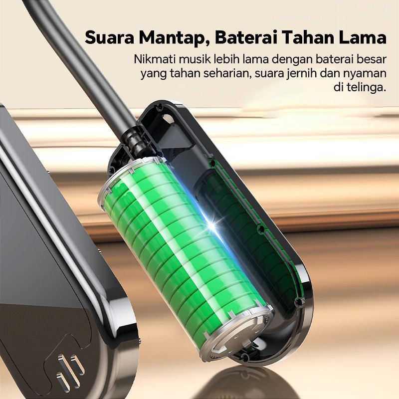 Headset Bluetooth nirkabel untuk olahraga dengan desain leher suara HIFI panoramik layar pintar pemantauan earpiece slot