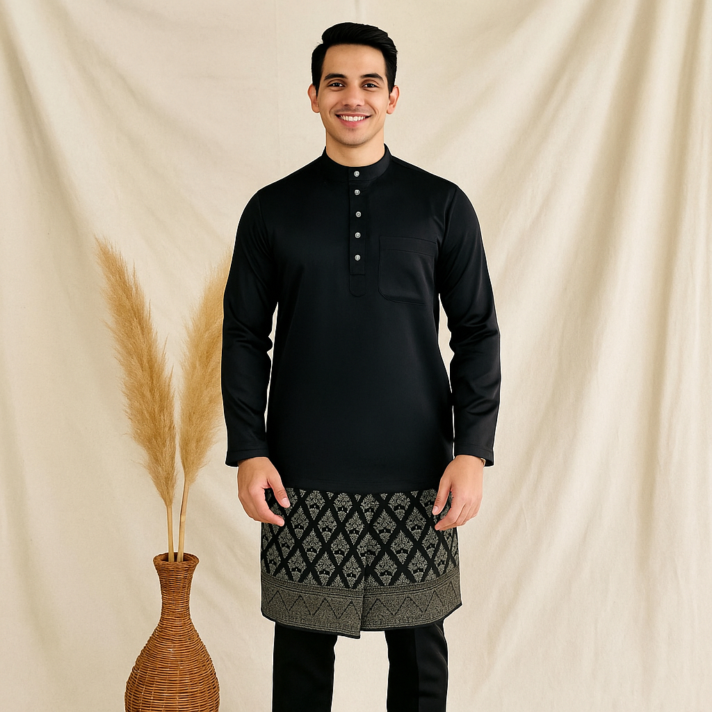 Sarung Samping Rumpak Kain Songket Cowok Lilit Motif Cekak Musang Teluk Belanga Pria Melayu Terbaru