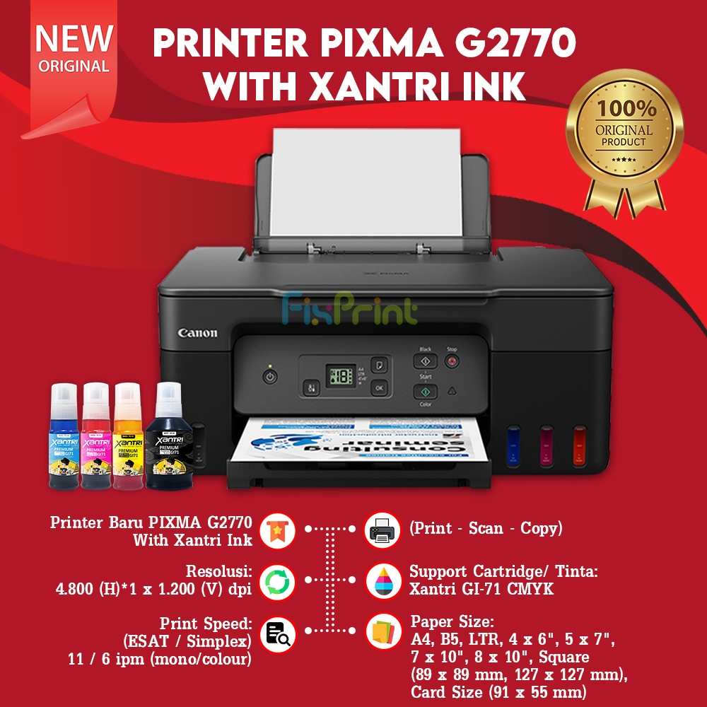 Canon Pixma G2770 Printer Inktank Ink Tank Multi Fungsi Multifungsi Garansi Resmi Bergaransi Original Print Scan Copy Pr