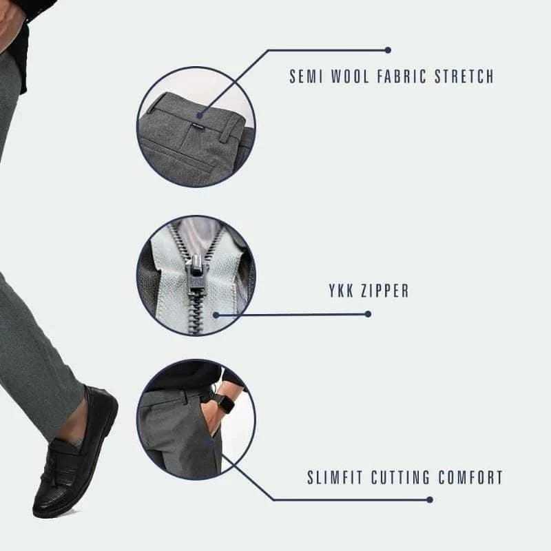Celana Kantor Formal Pria Slimfit Bahan Woll