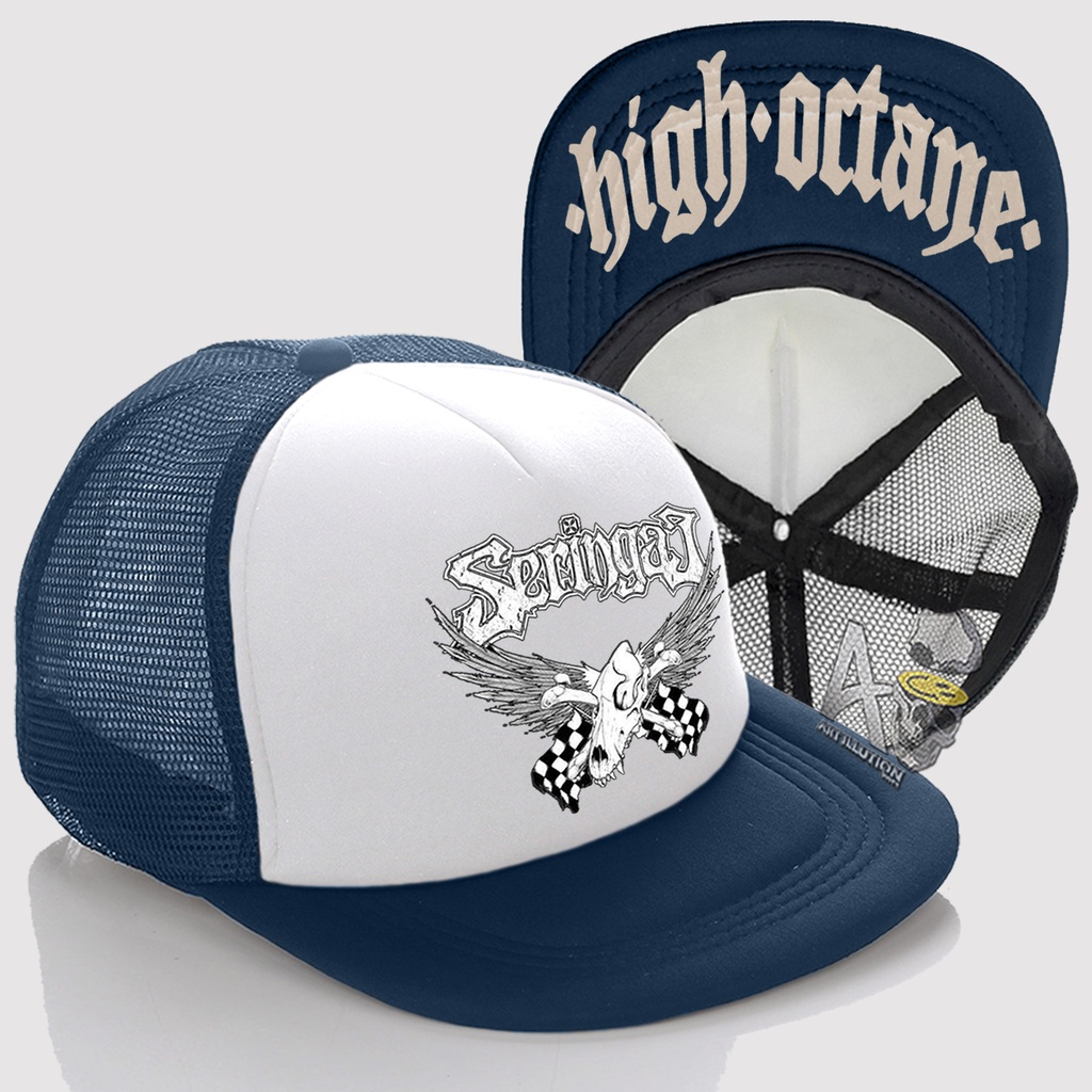 Topi Snapback Jaring Distro / Snapback Trucker Hat - Topi Seringai High Octane Logo Terbaru PREMIUM QUALITY V02 ST079