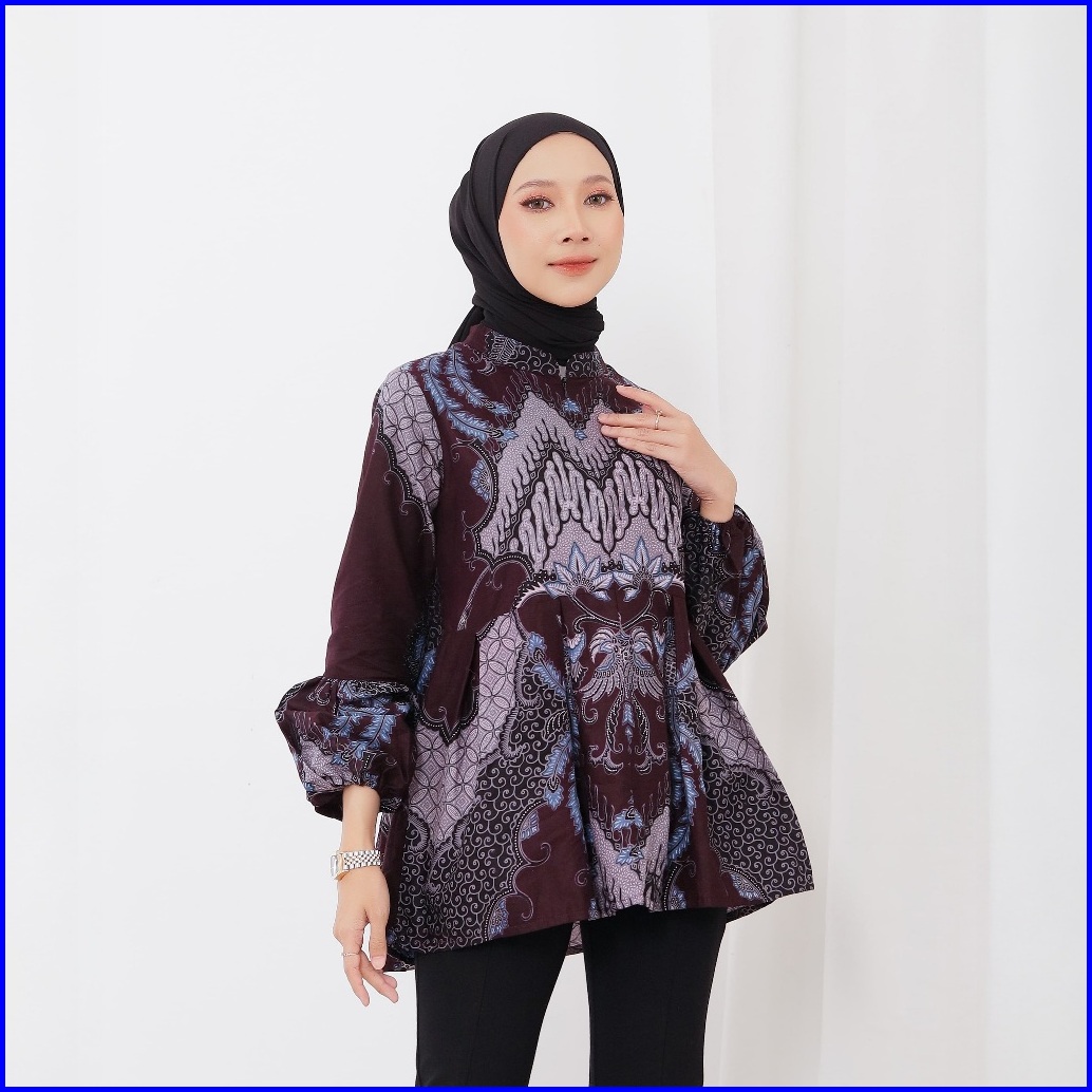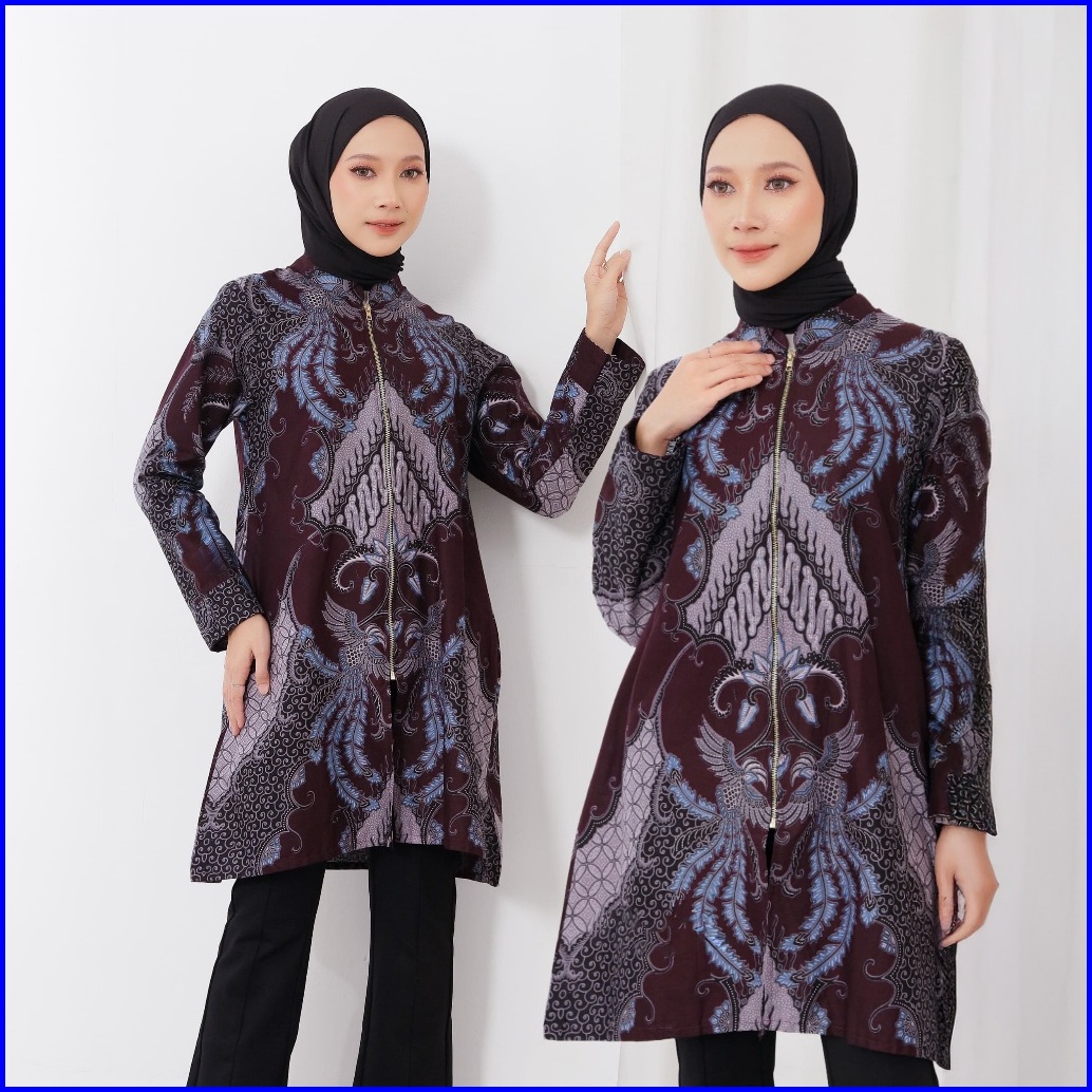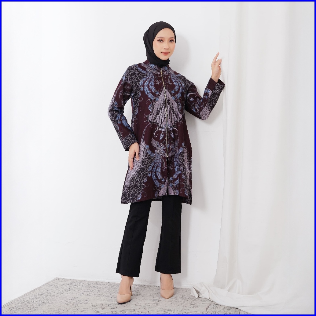 Brawee Batik Tunik Couple Modern Set Pakaian Couple Kemeja Batik Pria Panjang Atasan Batik Couple Terbaru
