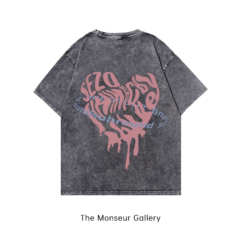 Kaos Oversize Pria Wanita The Monseur Gallery Motif Pink Love Hitam Premium
