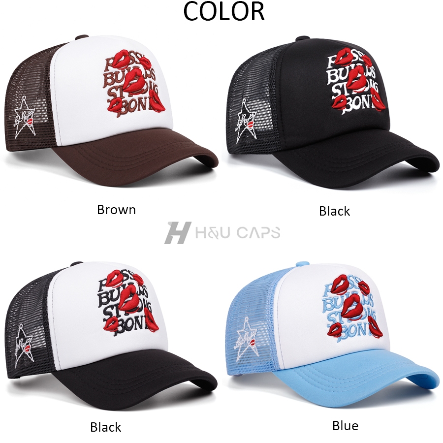 Topi baseball Red lips embroidery Hat Cap Casual Distro Fashion topi trucker for Pria Wanita
