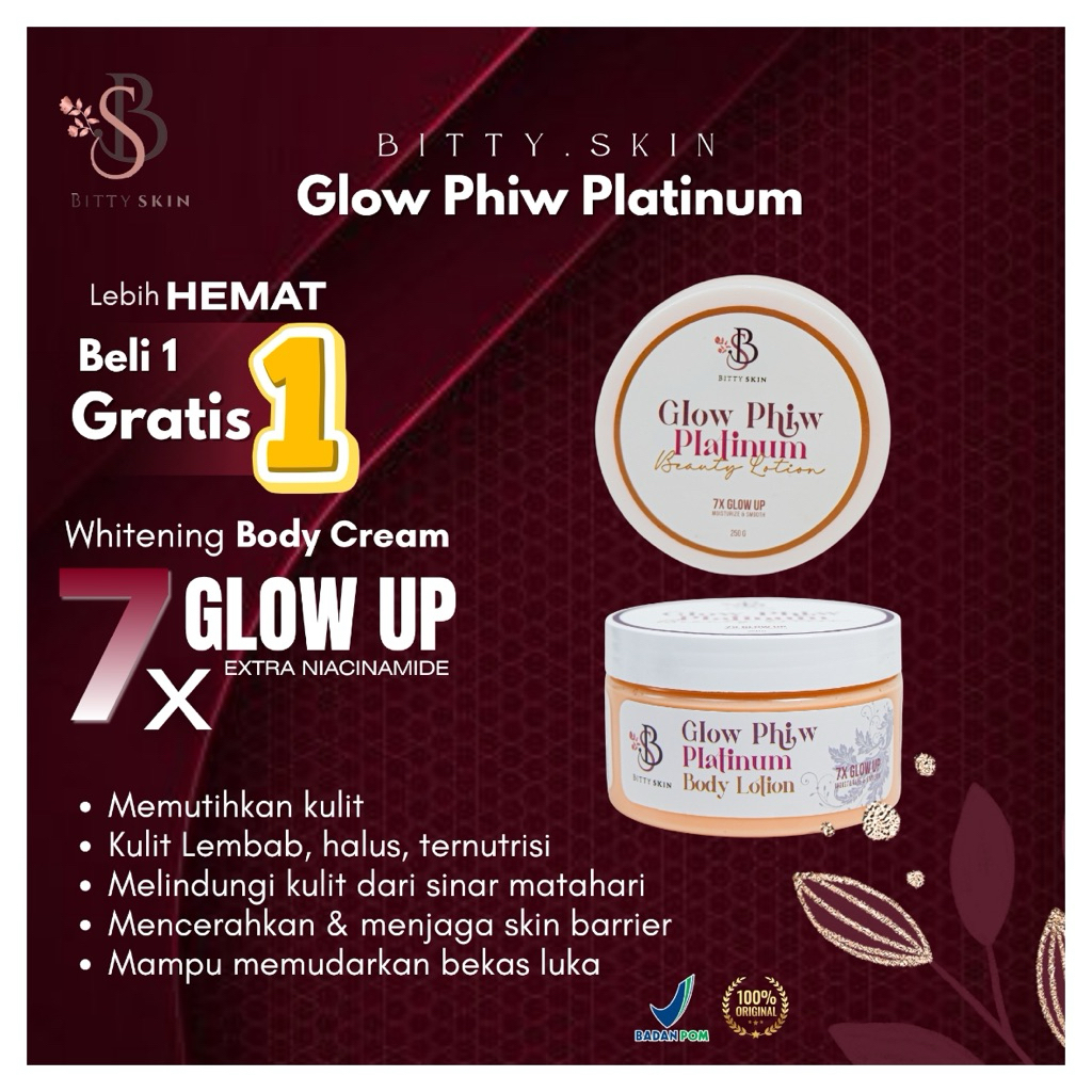 2 PCS BODY LOTION WHITENING PAKET HEMAT HB PLATINUM 250gr BITTY.SKIN ORI BPOM