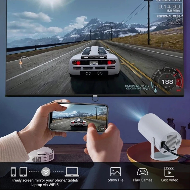 Proyektor HY300 Smart Projector 180 ANSI Lumens HD 1080P Bluetooth 5 1G+8G Android 11.0 Support 4K Outdoor Home Theater