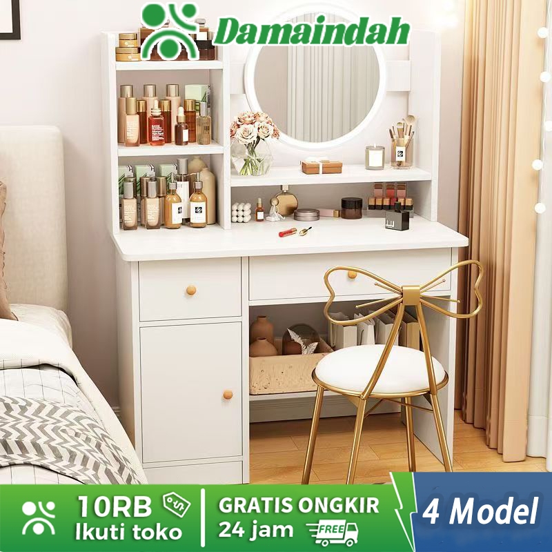 DAMAINDAH MEJA RIAS SET KURSI PITA / MEJA RIAS LAMPU LED/MEJA RIAS AESTHETIC/MINIMALIS/MINI/MODERN/NORDIC/MURAH