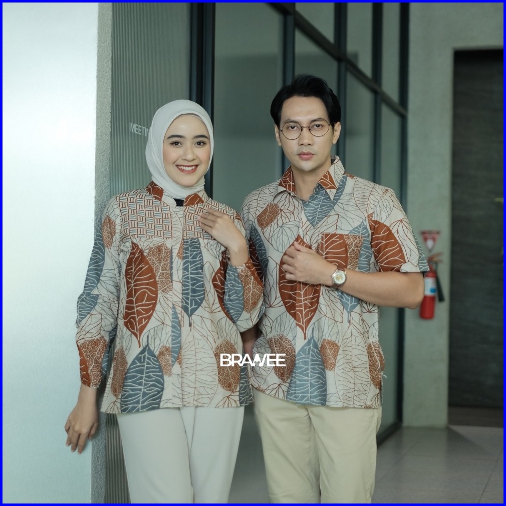 Brawee Baju Batik Couple Sarimbit Batik Kerja Couple Godhong Tales