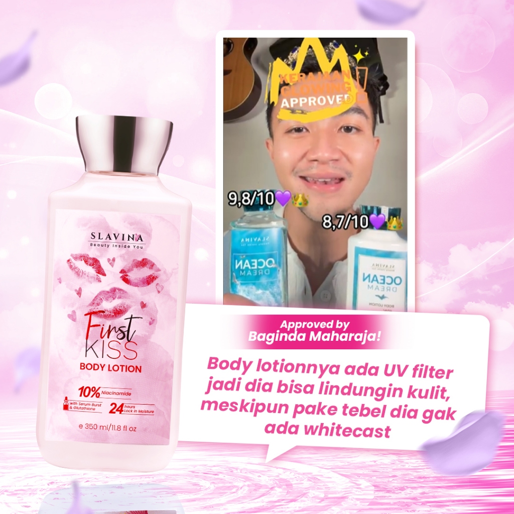 Body Lotion Nagita SLAVINA First Kiss Niacinamide Glutathione Mencerahkan Kulit Wangi Tahan Lama