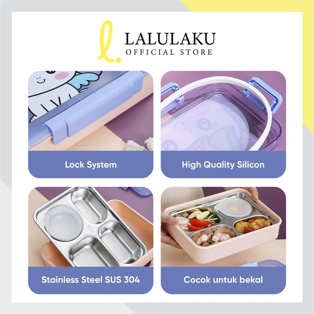 LUNCH BOX STAINLESS TEMPAT MAKAN KOTAK BEKALMAKAN KOTAK BENTO ANAK PAUD TK SD FOOD GRADE BPA FREE
