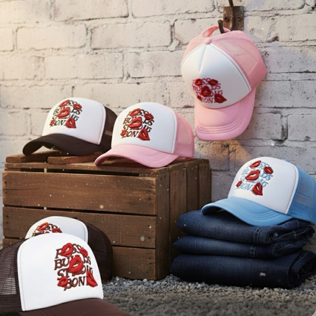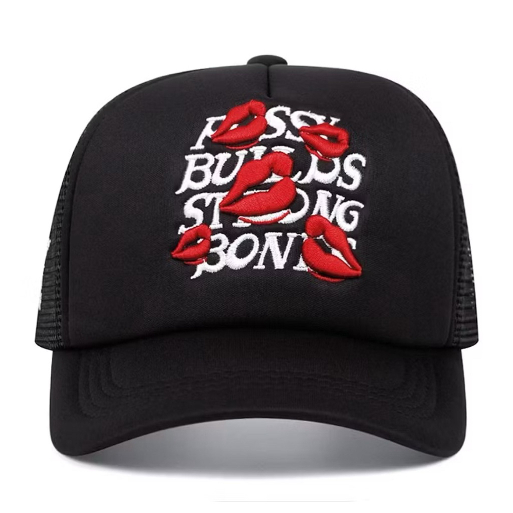 Topi Trucker Baseball Bordir Lips Uni | Topi jaring Distro Korea Casual Fashion Pria Wanita