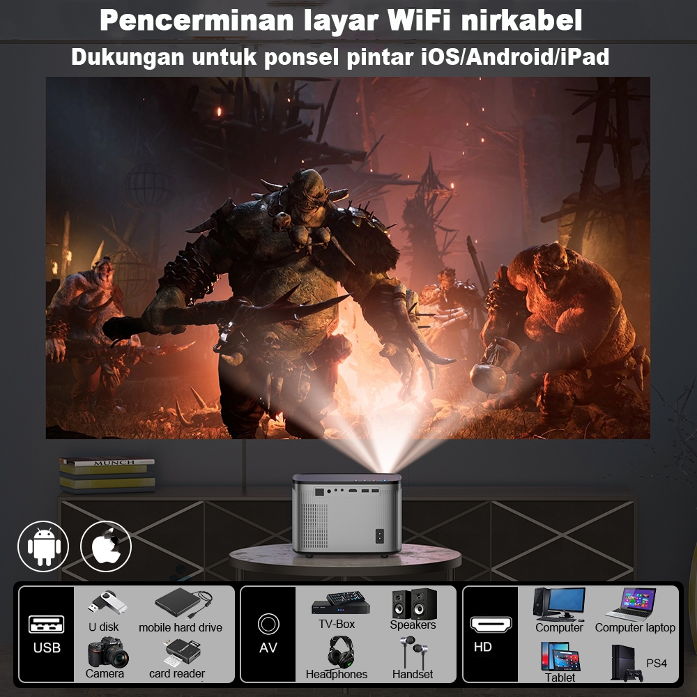 GOOJODOQ Proyektor Profesional Android 4k Wifi Full Hd 1080p 15500lm Suporta Android Sincronizando a Tela do Smartphone