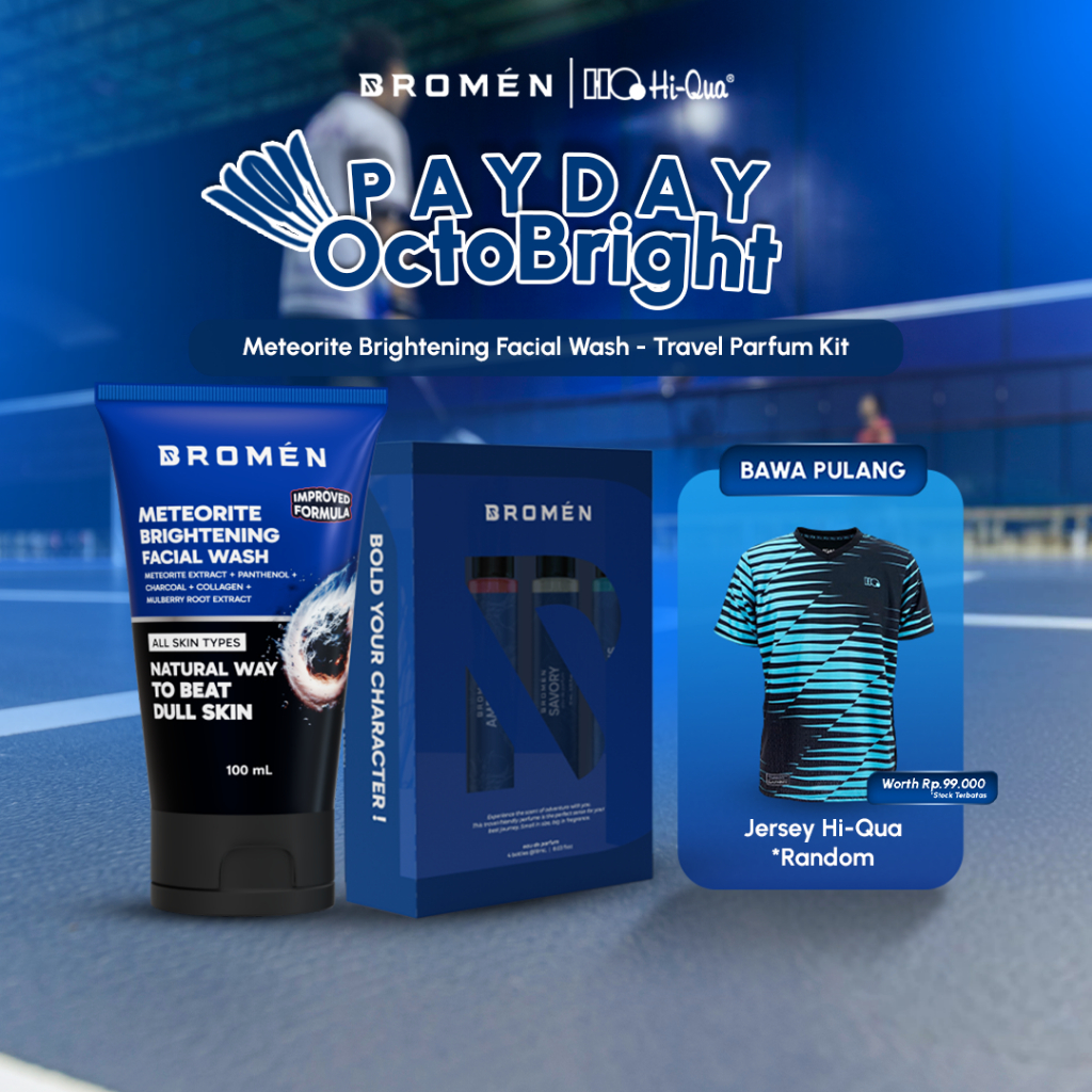 BROMEN X HI-QUA Kolaborasi Eksklusif (FREE Kaos Jersey Random) - Meteorite Brightening Facial Wash + Travel Parfum Kit