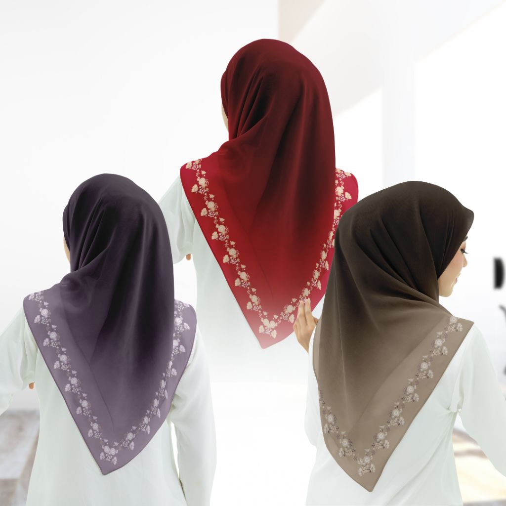 Hijab Segi Empat Voal Motif Lasercut Merah Putih Emira Series