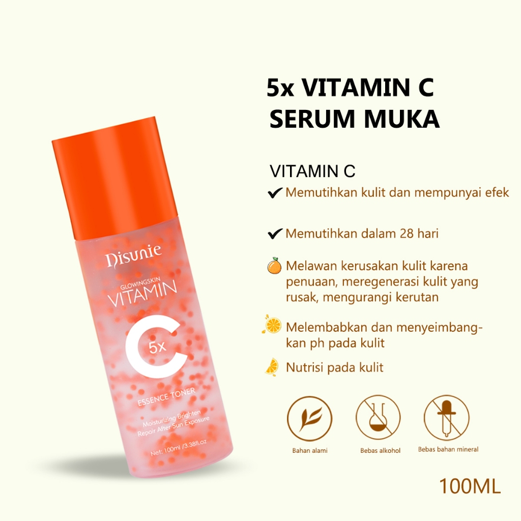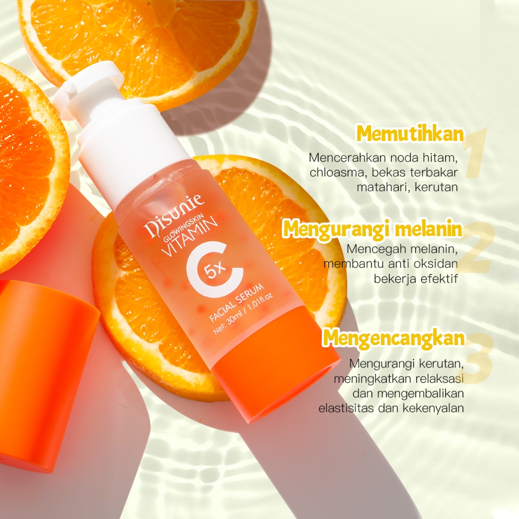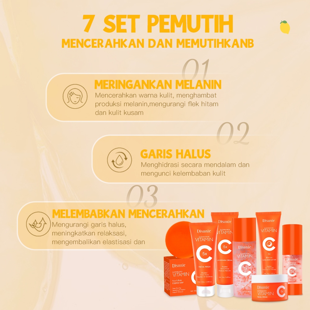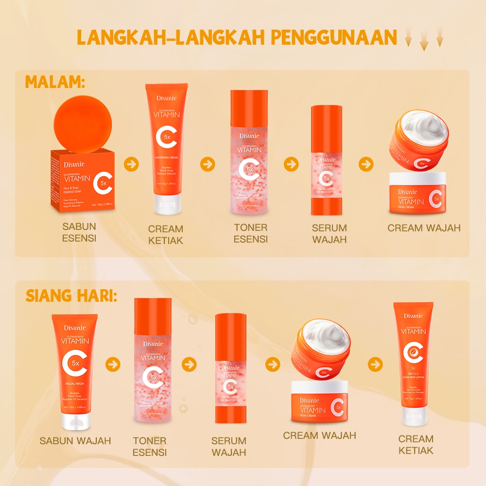 DISUNIE 5-in-1 VC Skincare Set: Face Wash+Toner+Serum+Cream+SPF50 Sunscreen | Bpom | Anti Lengket & Glowing in 7 Days for Humid Weather