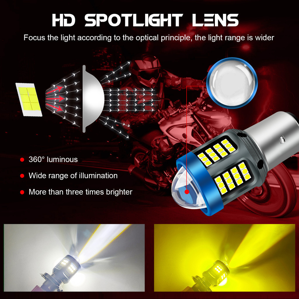 Lampu LED Motor 12V-80V H4 BA20D P15D T19 66SMD 2 Warna 3000LM H6 Lampu Depan Motor LED Balok Tinggi/Rendah untuk Motor